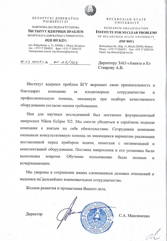 Отзывы о поставках ЗАО "Аванта и К" | Microscope.by
