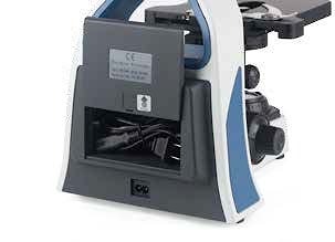 Жесткий литой штатив обеспечивает устойчивость микроскопа, а ручки для переноса и ниша для кабеля придают удобство для перемещения и хранения прибора в лаборатории.