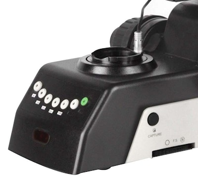 Цифровая камера может захватывать изображения, простым нажатием кнопки «захват» (CAPTURE) сбоку от нижней части корпуса микроскопа.